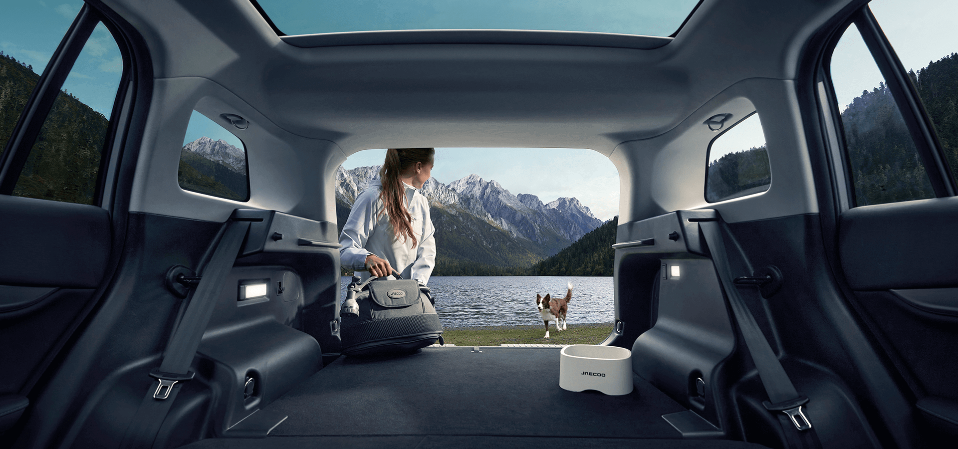 At the rear, the Mountain Tail LED lamps draw inspiration from layered natural silhouettes, delivering a bold, structured appearance that remains instantly recognizable. Their wide horizontal layout enhances visibility for surrounding vehicles and reinforces the J5 HEV’s stable stance. Dynamic and expressive, the taillight design complements the SUV’s aesthetic while ensuring reliable illumination in all conditions