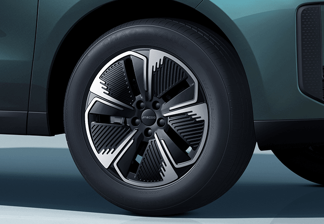 Complementing the design, the J5 HEV rides on 18-inch alloy rims engineered for both form and function. Their geometric pattern elevates the visual stance while supporting balanced handling performance. The tyre profile is optimized for grip and comfort, providing confident traction across varied road conditions while contributing to the SUV’s poised driving feel.