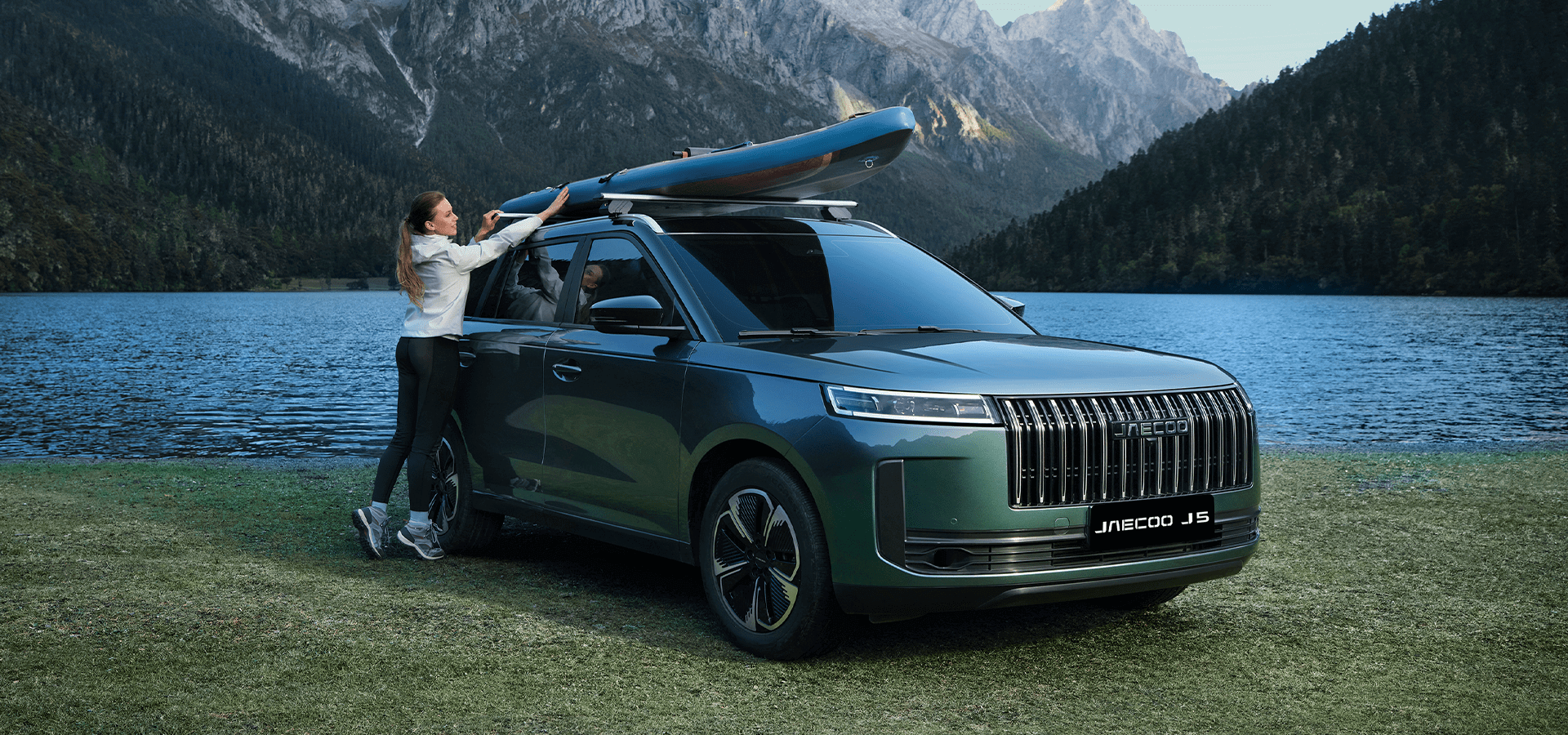 A bold Waterfall Grille defines the front fascia, expressing presence and strength through sculpted vertical lines. This signature grille design reflects the Jaecoo J5’s rugged yet premium identity.