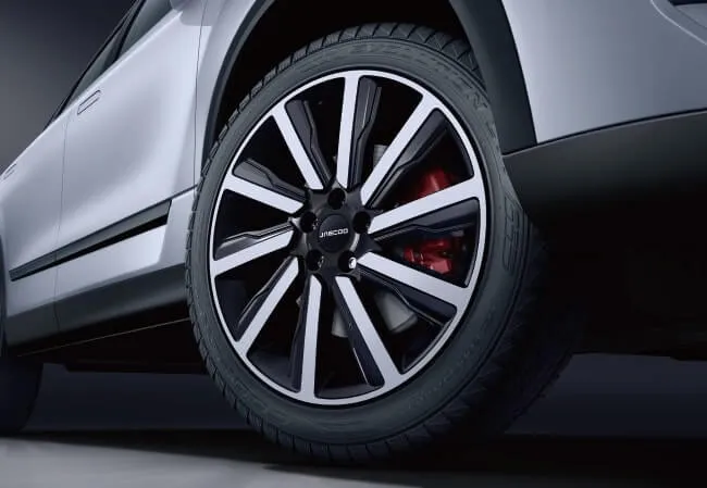 Bold 19” alloy wheels enhance stability and grip while adding a sporty edge to the overall design.