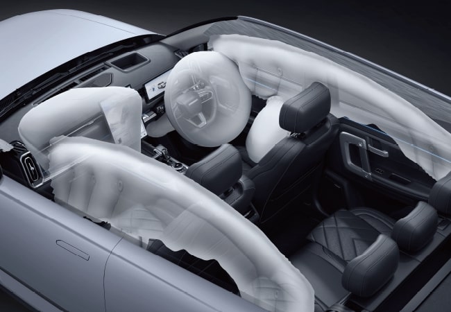 A complete suite of 7 airbags including front, side, curtain, seat gap, front center, and driver’s knee airbags provides all round safety and peace of mind.
