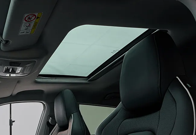 Let in the light and open up the sky. The wide sunroof floods the cabin with natural light, creating a fresh and spacious ambience.